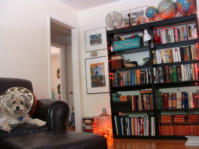 But what she really doesn’t like is… orange twinkle lights. She tried to bite them. And then she hid under the dining room table for a while. Go figure.