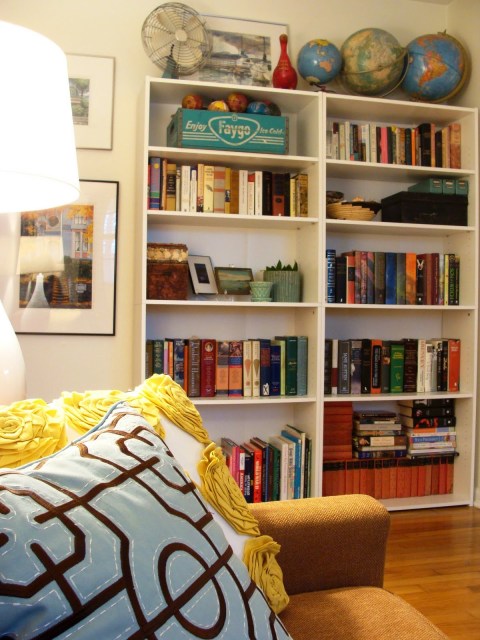 For the last year I’ve passed by these black bookshelves and those recovered lampshades and thought, “Eh. I really hate those. Why did I do that?”