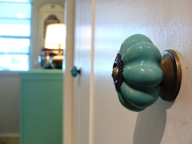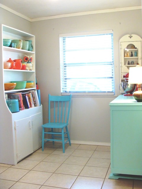 I love the way the morning light shines through the window. I love having all my turquoise pottery in one place.