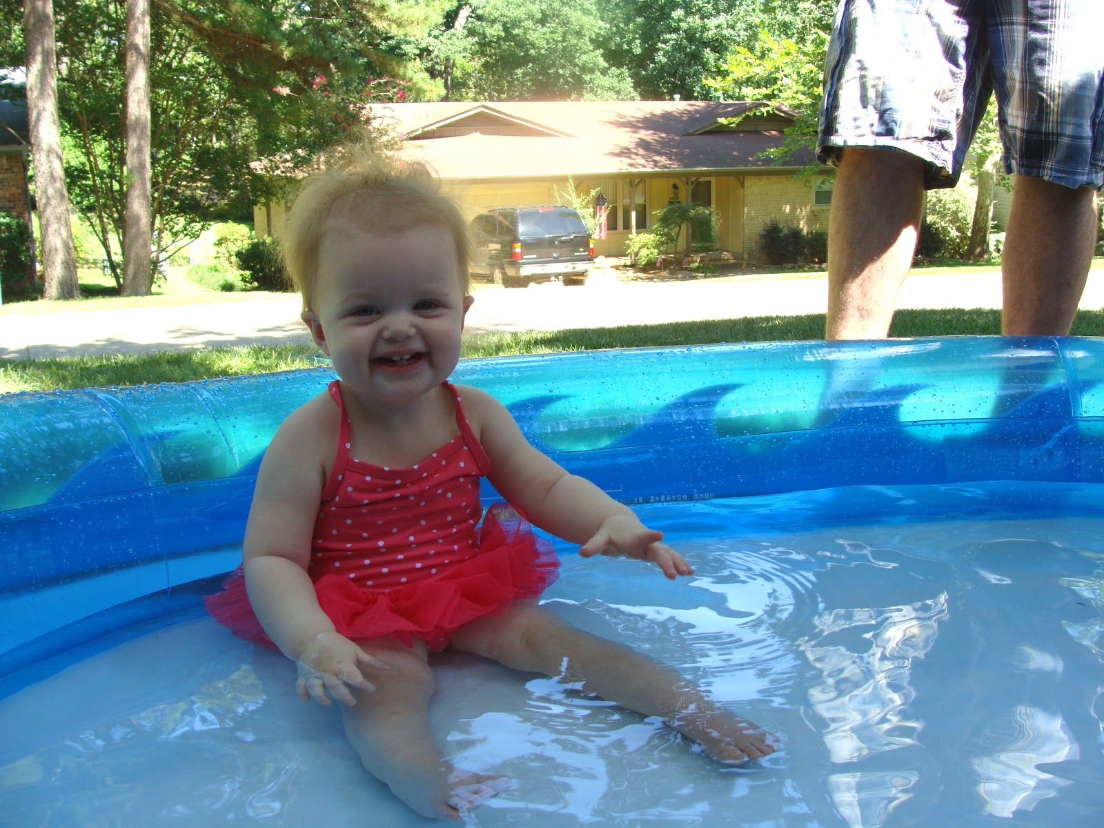 Summer hasn’t been Jane’s favorite season. She doesn’t care for the sun shining in her eyes when she rides in the car. She doesn’t like the hot seat belt in her carseat. But this weekend, that all changed when she donned a bright pink tutu bathing suit and took a dip in a tiny pool.