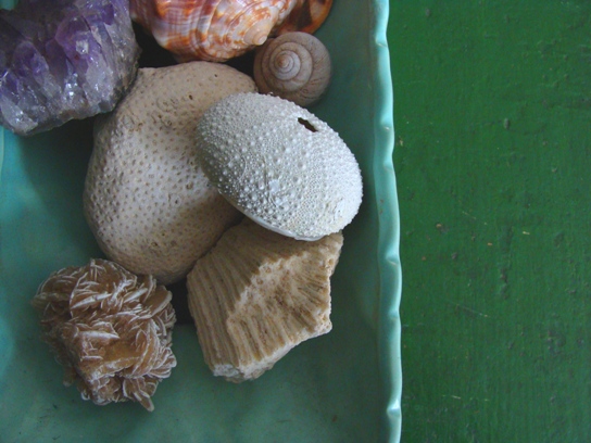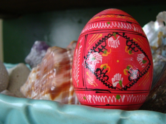 I found these goodies in a box last week. Several family members travel a lot and bring me little trinkets from all over the world. My aunt brought me this painted egg from the Ukraine.My brother-in-law brought me a piece of the Great Wall. Rachel found a shell in Venice. This is a very happy bowl.