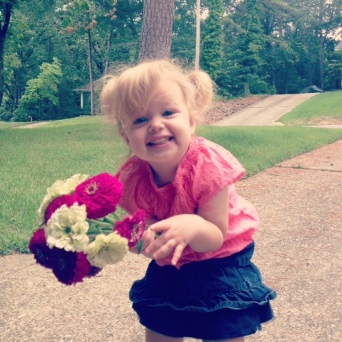 Even when I explained to you that the flowers needed to drink water because they get thirsty, you hung on the side of the dining table, stared at them in their vase, cried, wailed, gnashed your little teeth and yelled, “But dey’re mine. MY BOWERS.”