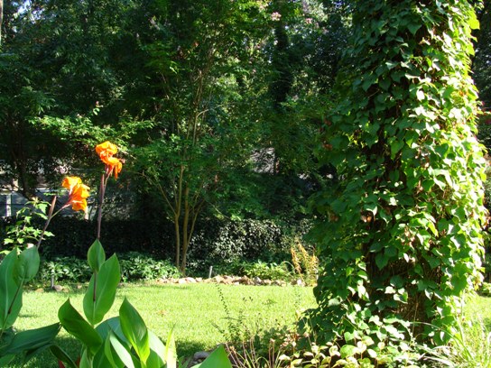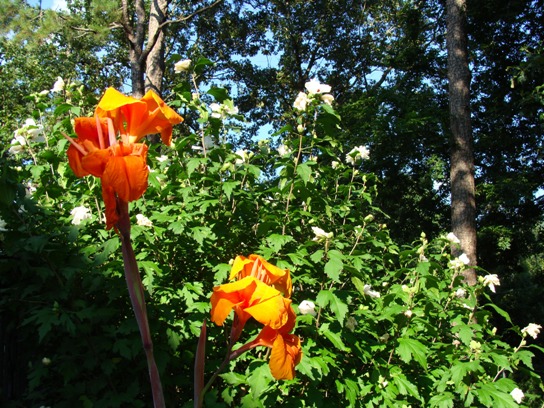 There are bright orange, gigantic flowers popping up in the backyard. There are also two crepe myrtle trees that I hadn’t realized were there until they bloomed magenta and lavender. I love this yard.