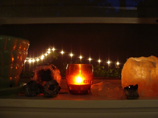 You might remember that I got new drapes in the dining room, and I made a matching valence in the kitchen. Nothing frilly. Frilly valences give me hives. But I like the continuity. I also like doing dishes with the window open, candles lit, and patio lights on. Seriously. Household chores should not be so meditative.