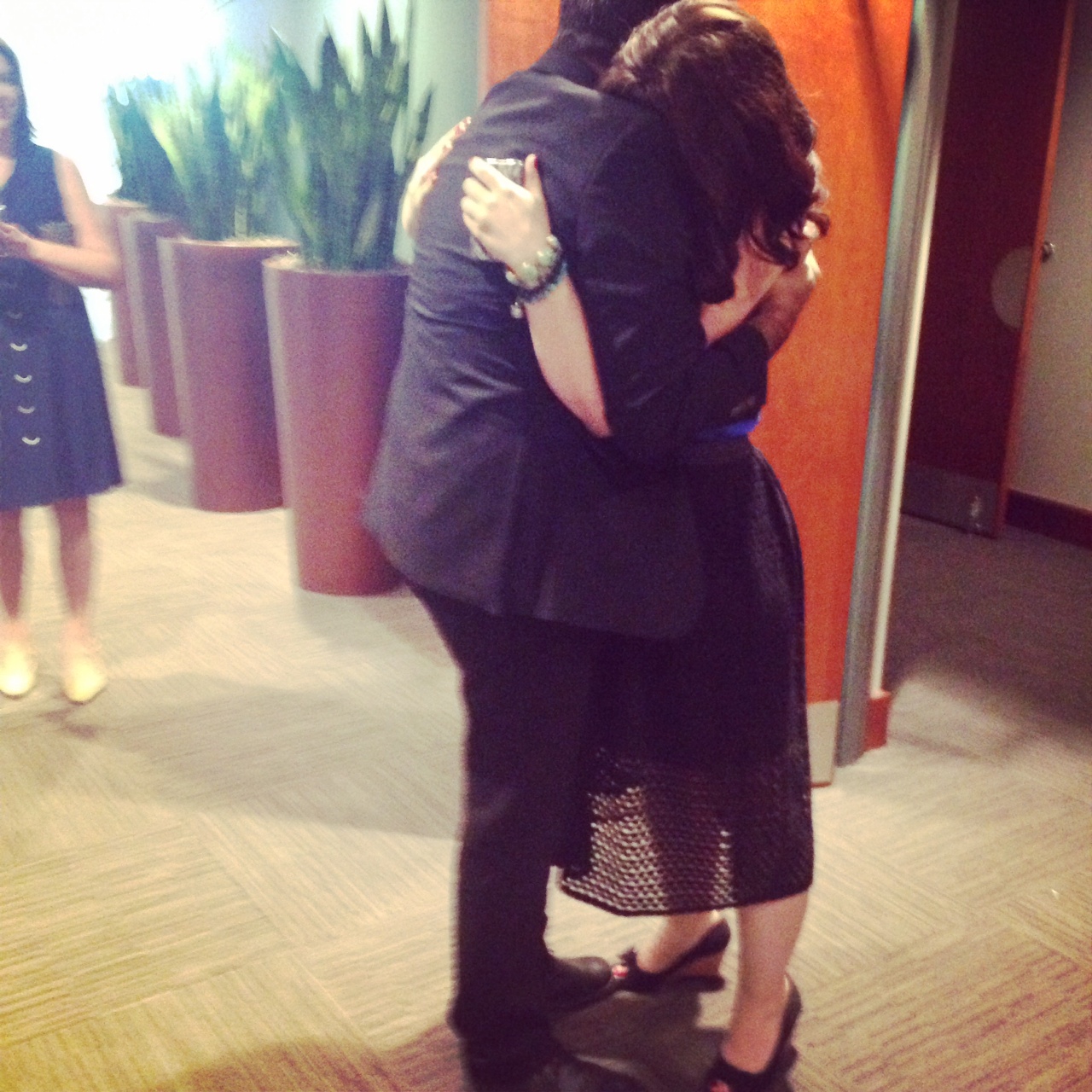 And this is what happens when your fella surprises you and flies 1200 miles to watch the show, and you grab him and smoosh your face in his neck to hide the tears and end up rubbing makeup all over his handsome coat.  And by you, I mean me. He is just… I don’t have the words. And I always have the words. But with him they just end up a tangled mess in my head with bits like “loyal” and “sweet” and “tough” and “smokin’.”