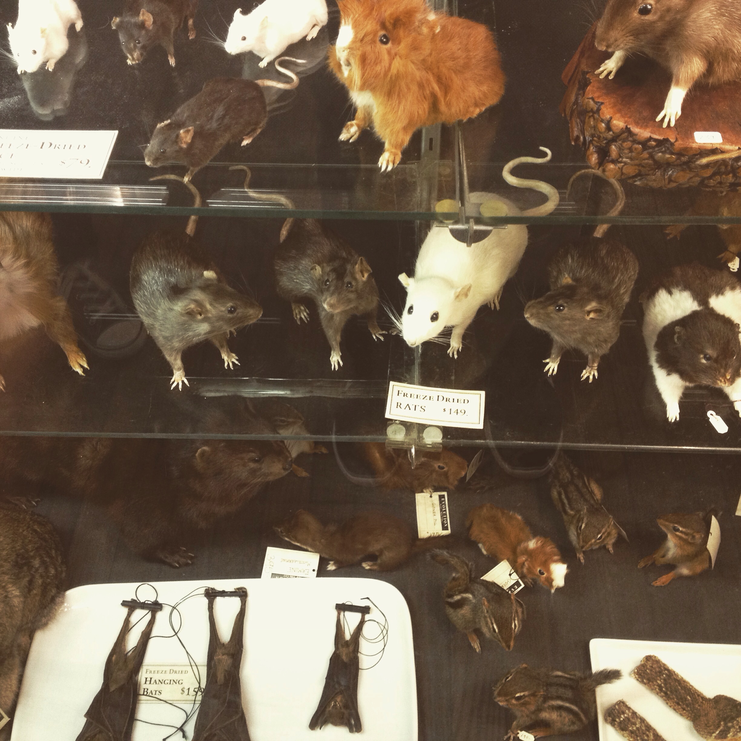 But other than weather shock, I’m feeling right at home in this city, where shops sell freeze dried rats and diorama of baby bat bones.