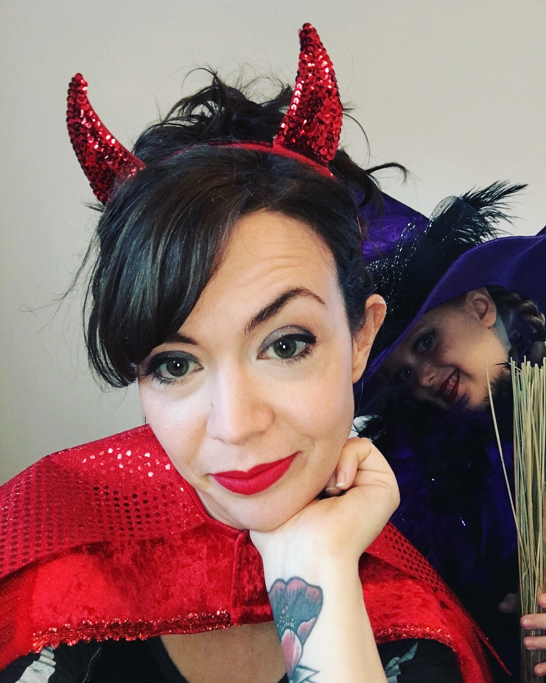 So this Halloween we went full wicked. Our costumes were cobbled together from boxes under the bed and the Michael’s half off sale. The key, I’ve discovered, for true Halloween joy, is not the ornate-ness or the amount of money spent. It’s about accessories, makeup, and the ability to commit to a character in your mind.